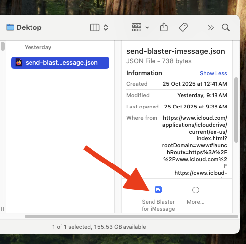 - Right click on file tansfered, Quick Actions > Send Blaster for iMessage
