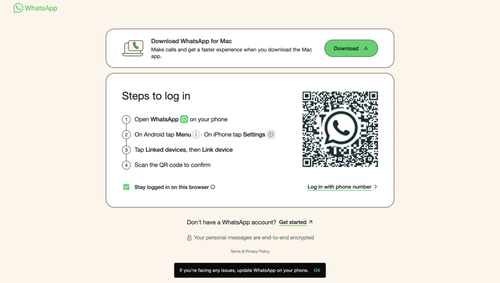 - WhatsApp Web access (your phone must stay connected to the internet).